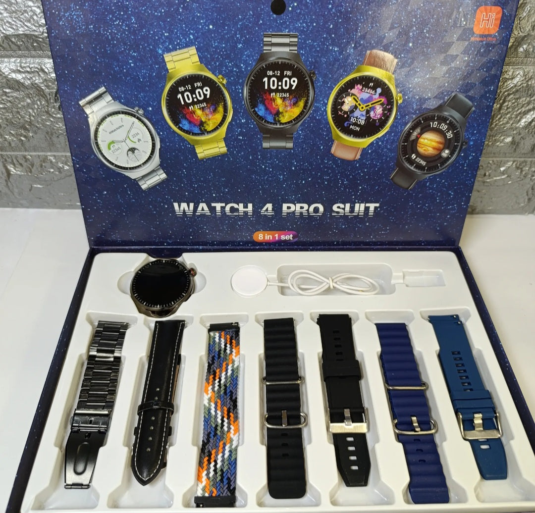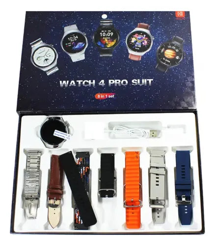 Introduciendo el Smartwatch 4 Pro Suit, un completo pack que incluye un reloj inteligente junto con 7 mallas intercambiables para adaptarse a tu estilo en cada ocasión. Equipado con una amplia gama de características avanzadas, este dispositivo revolucionario te permite mantener el control total sobre tu día, desde el intercambio de carátulas hasta el control de tu salud y bienestar.